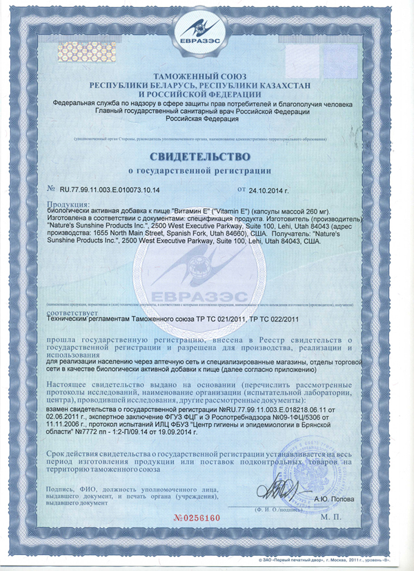Свидетельство о государственной регистрации Презентация Витамин Е